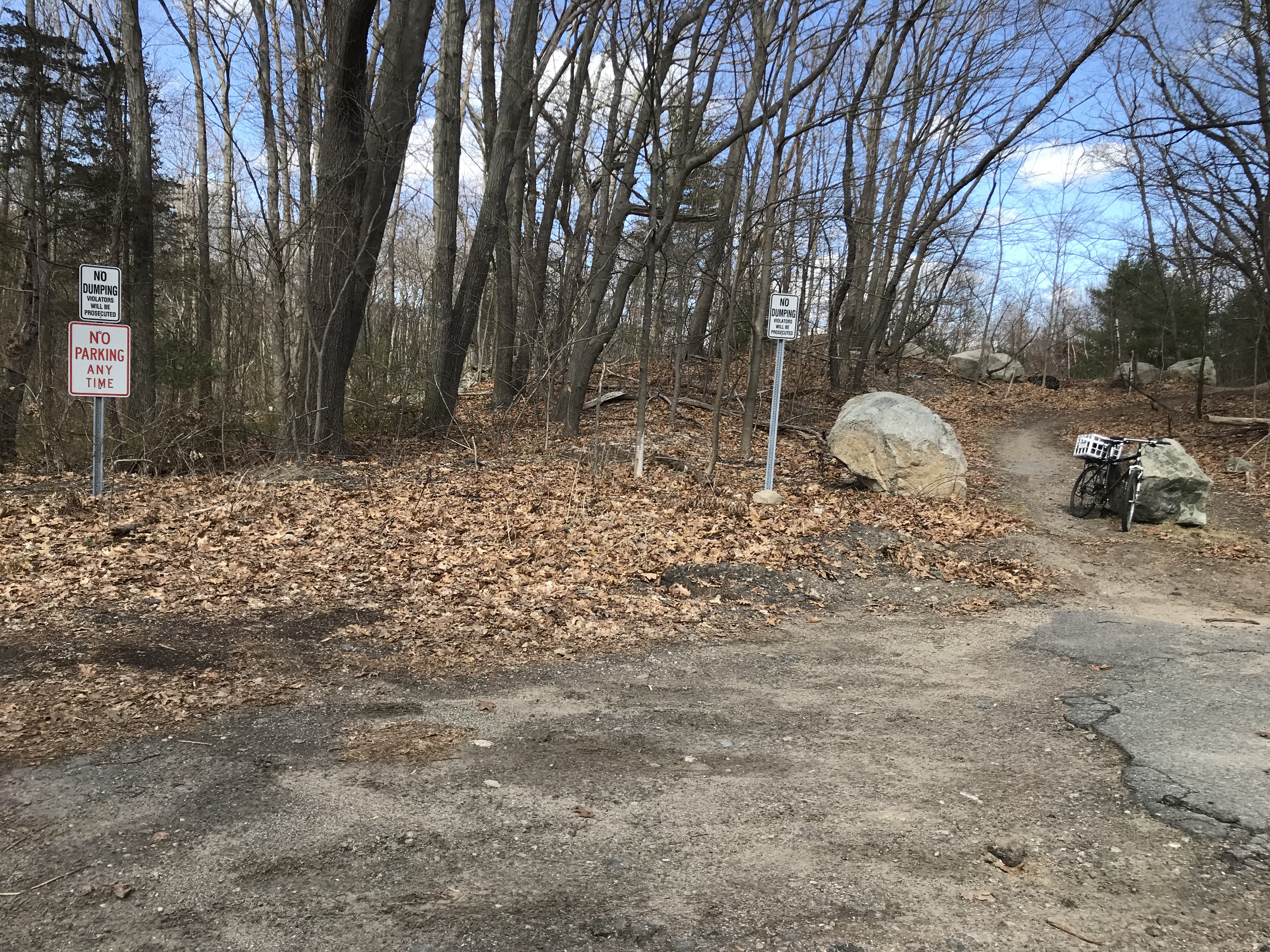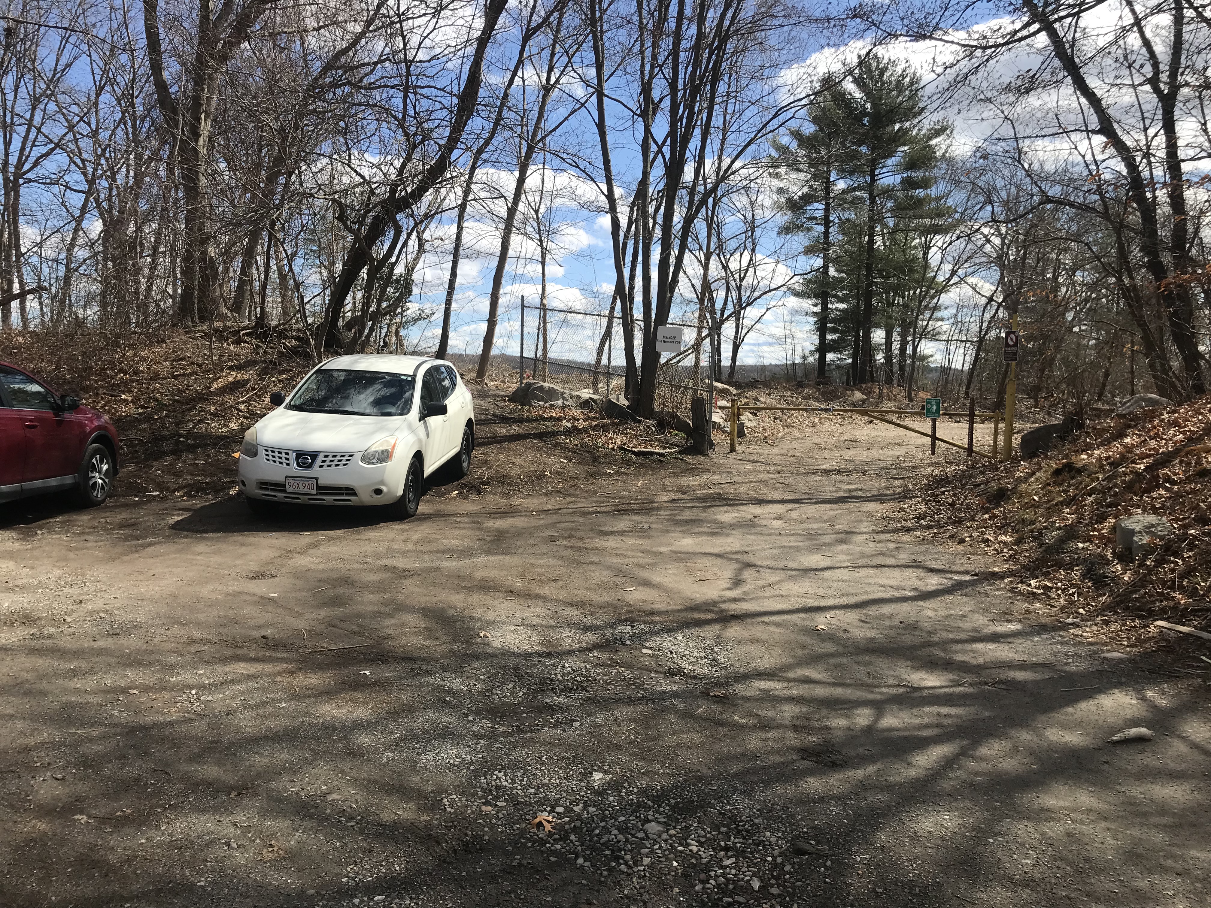2023 note: We tried to place a "Welcome" sign at the Oak Street Parking but the Commonwealth of Massachusetts said, in a 1950s-like paternalistic tone, "Oh, no, one must not park so close to a reservoir, and we, The State, control that patch of land even though it's in Randolph." Our more sensible Randolph police assure me that they would never ticket anyone for parking here. For now, no "Welcome" sign -- go west to the other Oak Street entrance. We'll fix this 1950s mentality in 2024!