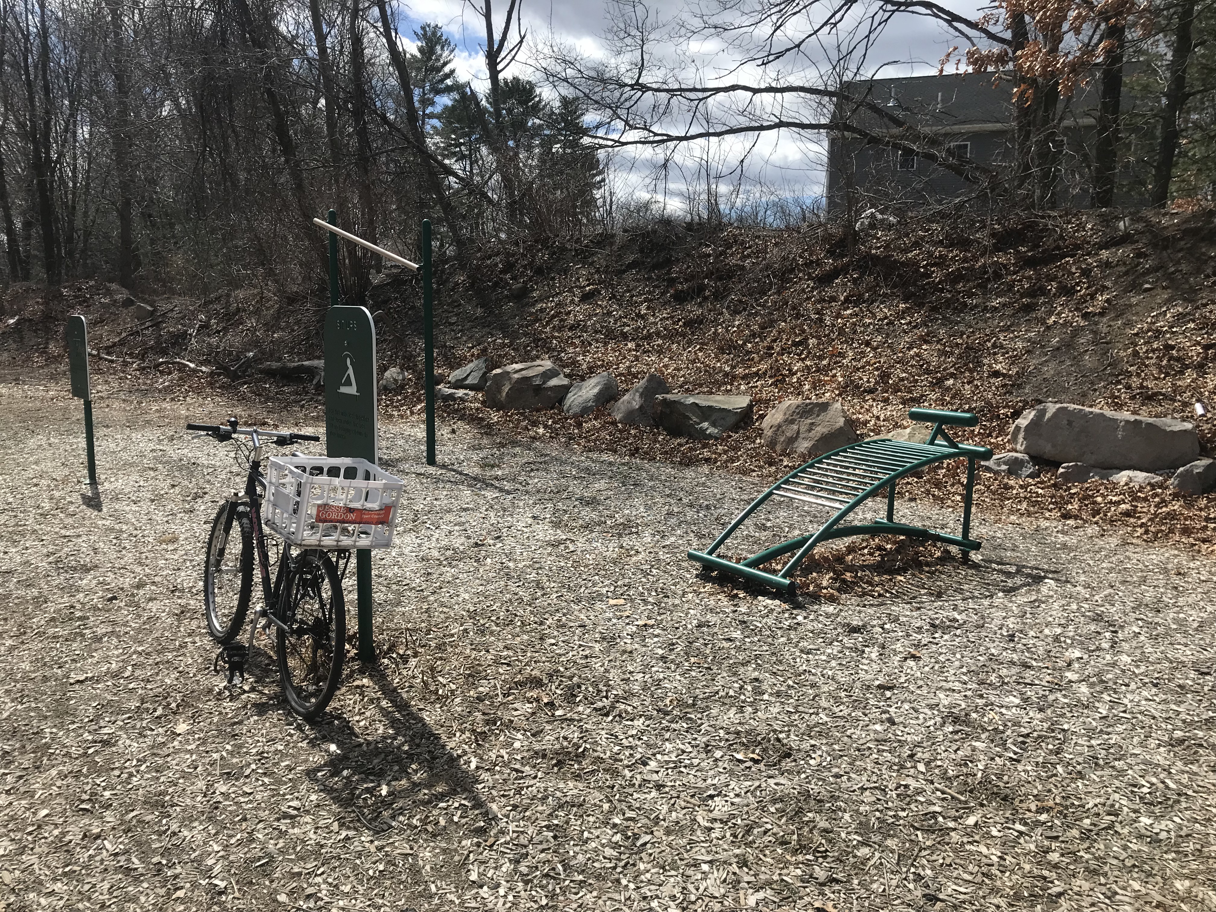 This workout area is visible from Oak Street on the west sied of teh reservoir, but you have to park on the east side of the reservoir to get there.