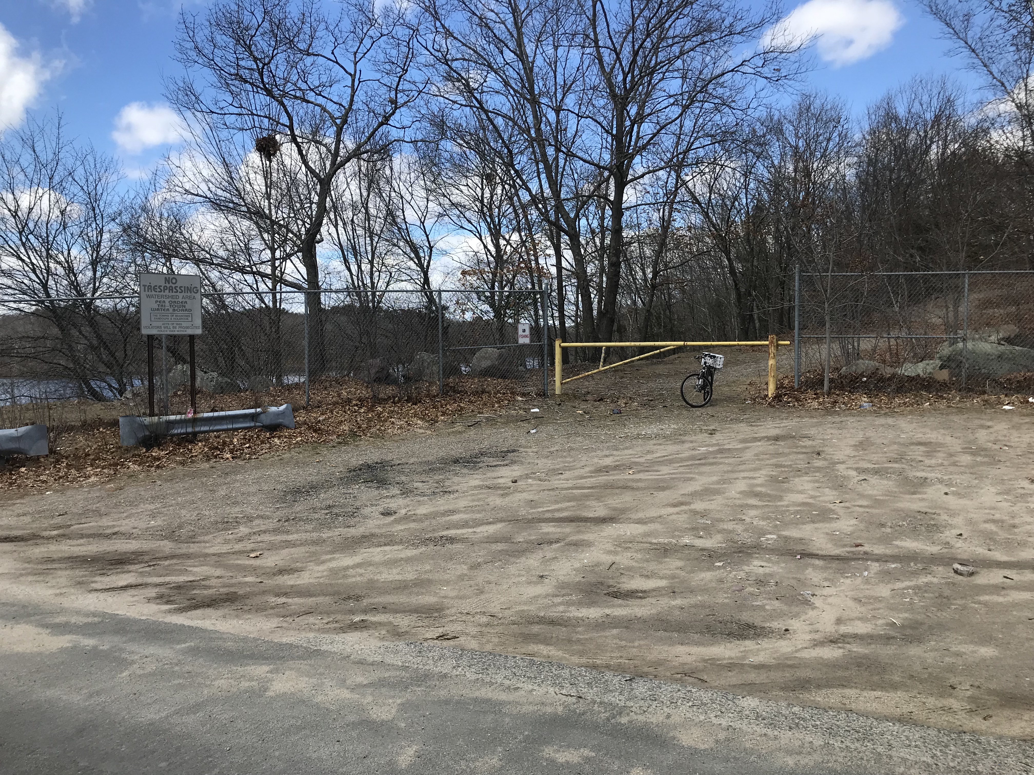 There ARE entrances from, Messina Drive and other Braintree streets -- without "No Trespassing" signs -- and replacing those with "Welcome" signs would make our reservoir a lot more open and accessible -- this point is basically the northern entrance to the Randoph Fin-Fur-Feather Conservation Area (it doesn't quite reach the Braintree border now).