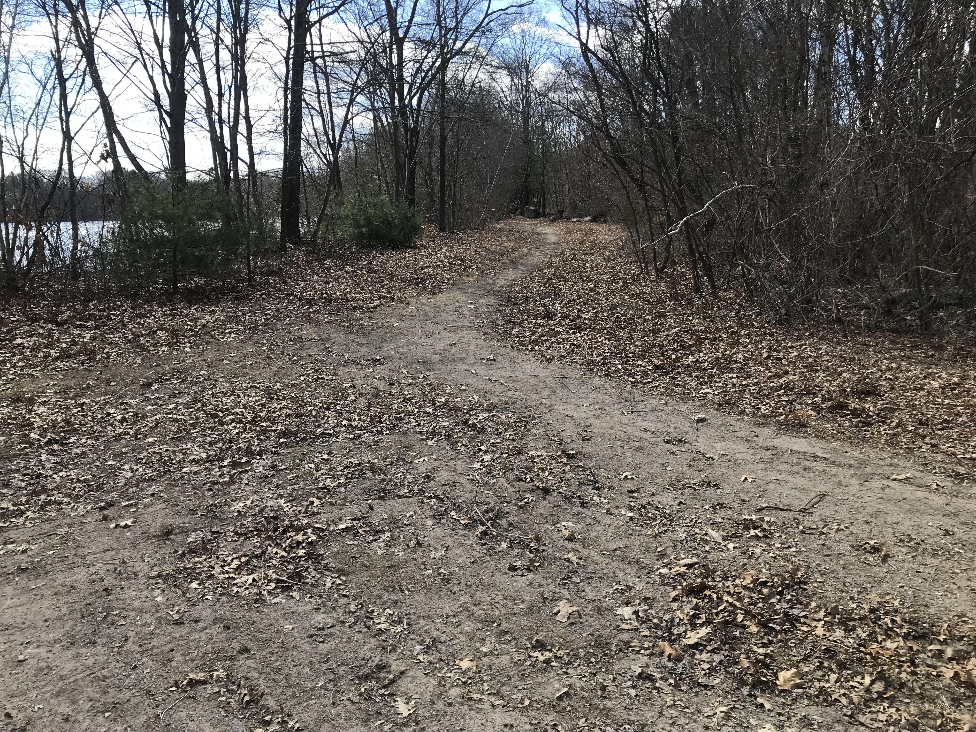 Note that the Town of Braintree does not maintain this section of the trail around reservoir (from the dam to the Randolph border), because they don't encourage recreational usage like Randolph does. Therefore it's a wet mess -- after rain, or in spring, you're likely to get your shoes wet and muddy.